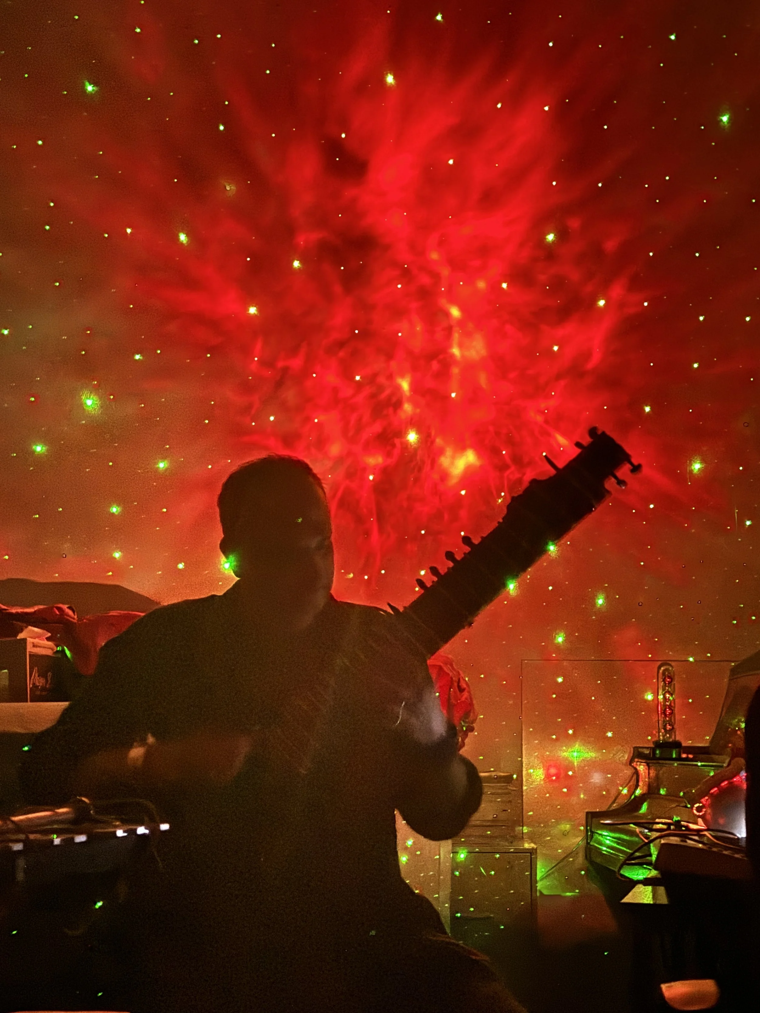 Chandra Shukla (born Vivek Chandra Shukla 1975 Alameda, California) is an experimental/avant-garde musician interested in audio, video, live performances, graphic design and runs the independent record label Erototox Decodings. His history stems from learning Indian Classical Music by learning tabla from the likes of Pandit Swapan Chaudhuri and sitar from Pandit Habib Khan. At the age of 17, Chandra Shukla met Genesis Breyer P-Orridge and for the next 4 years would be involved with joining Psychic TV and h/er for their live performances sometimes in the Bay Area and other times abroad. In 1998, joining P-Orridge’s first incarnation of Thee Majesty on stage in Stockholm Sweden, with Bachir and Mustafa Attar of The Master Musicians of Jajouka playing eps samplers and his Indian classical instruments. Though offering his skills to other projects such as Scribble Seven (Steven Stapleton’s Nurse With Wound live project). Besides field recordings, modular synthesis, a wide and varied collection of vintage and modern effects pedals and units and the occasional gadget that makes sounds, he also is an avid collector of very rare Antiquarian books and records. In 2021, Chandra Shukla along with friend Carl Michael von Hausswolff debuted their project ‘Travelogue’ (Touch. UK). Xambuca is his main electro-acoustic experimental project and one that has shared the stage with many guests including a rotating cast of characters with audio/visual elements both live and exhibited. Chandra Shukla once a resident of the San Francisco Bay Area and Brooklyn/New York City now resides in Asheville, NC where he resides with his partner and musician Elisa Faires and their two cats.